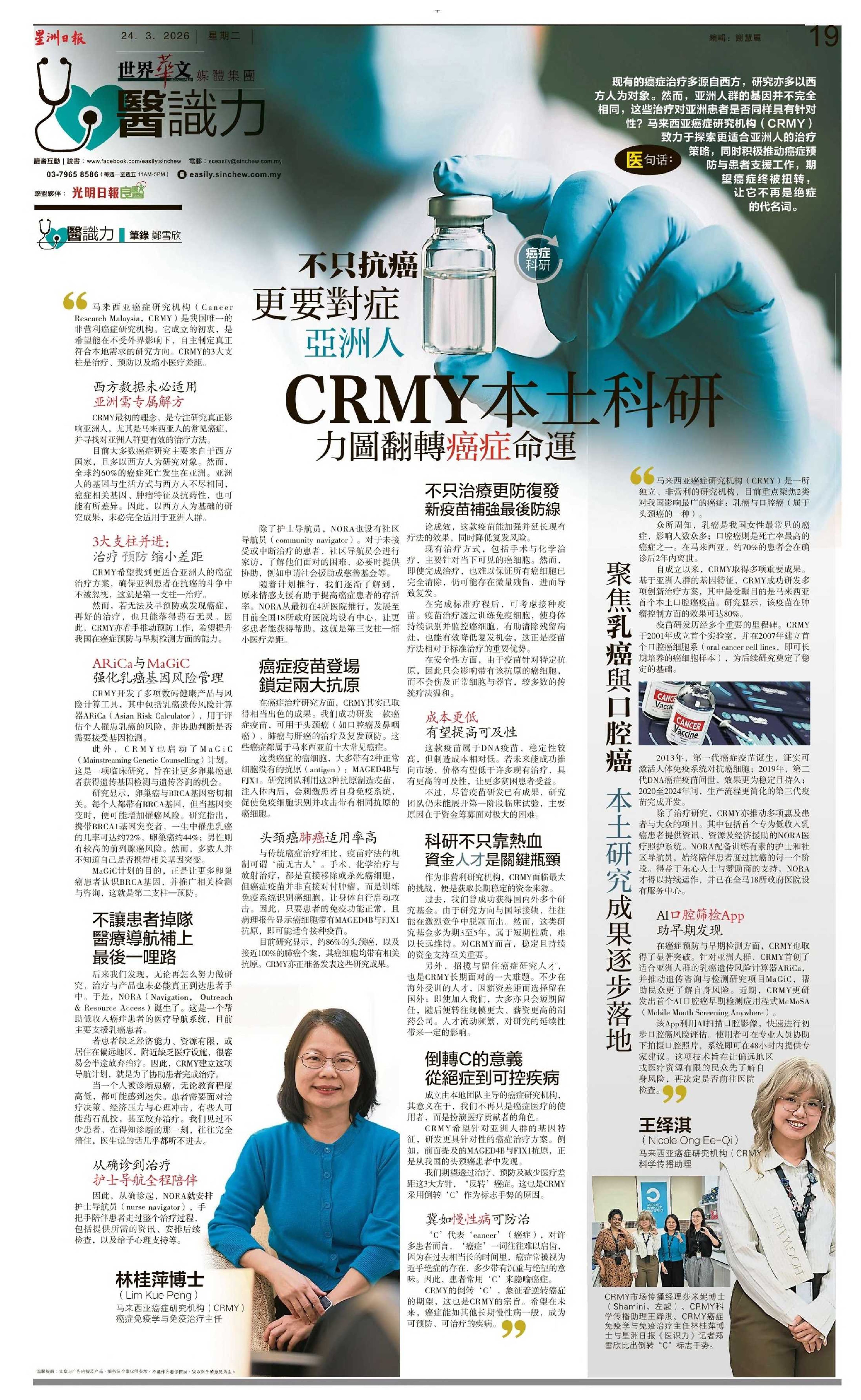 Beyond Cancer Treatment: How CRMY Is Improving Cancer Outcomes Through Research Tailored for Asians (Sin Chew Daily)