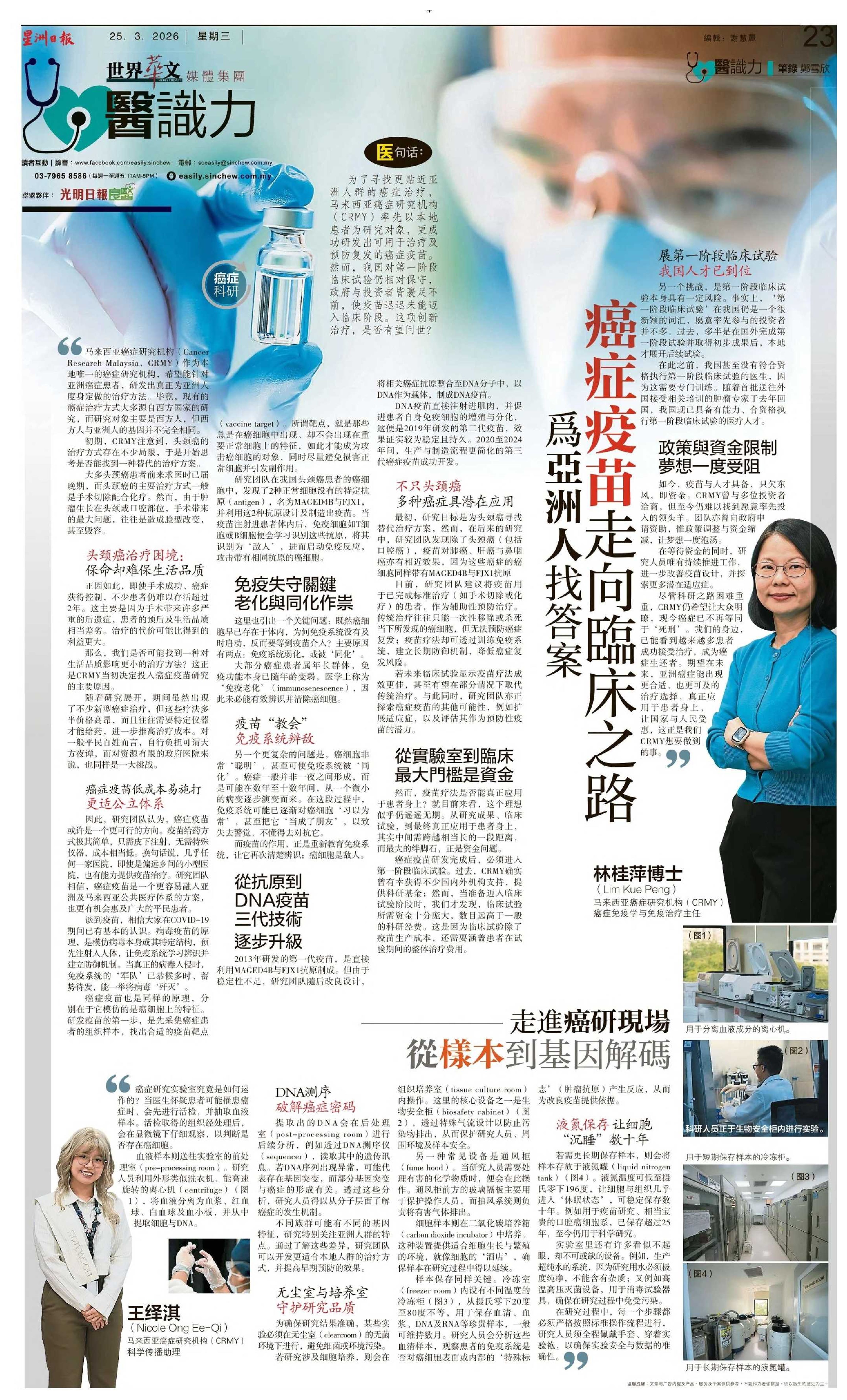 Developing a Cancer Vaccine for Asians (Sin Chew Daily)